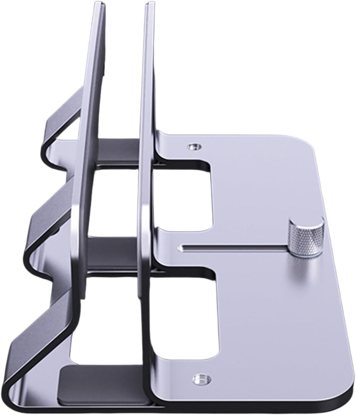 This vertical laptop stand features adjustable width (14mm 50mm) to securely hold most laptops, crafted from aluminum alloy for space saving desktop organization and device .