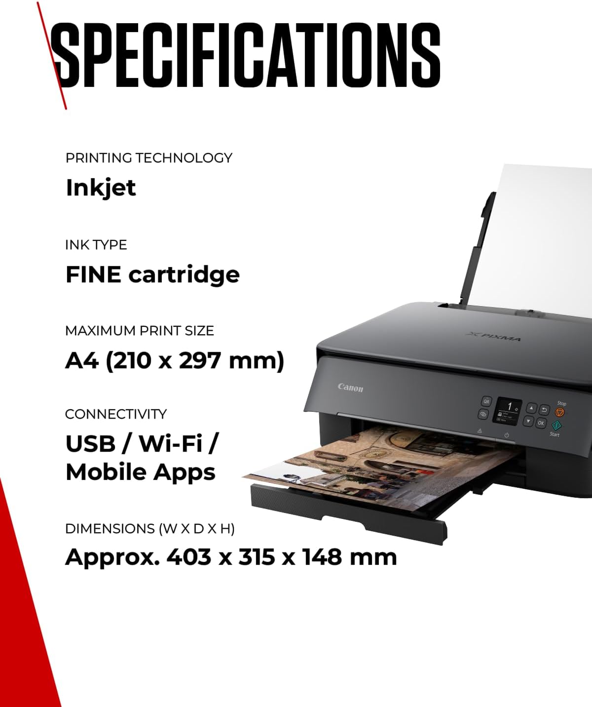 PHOTO PRINTING: Enjoy vivid, long-lasting photos from this photo printer with Canon FINE ink cartridges & ChromaLife100 Ink – ideal for creative projects.