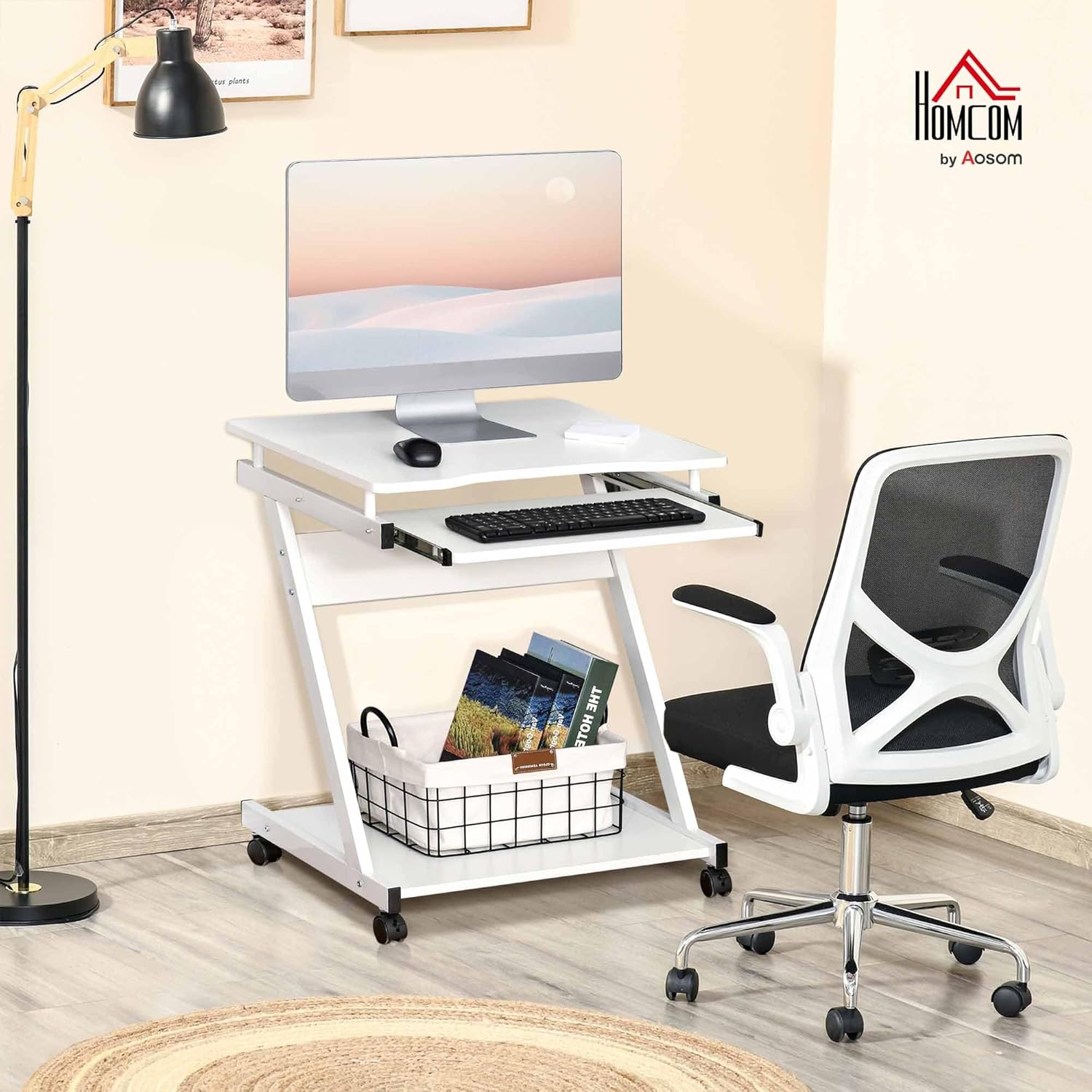 WORK AND STORAGE: This home office desk features an open table top, slide-out keyboard tray and bottom shelf, our workstations gives you room to work and keep all essentials stored together.