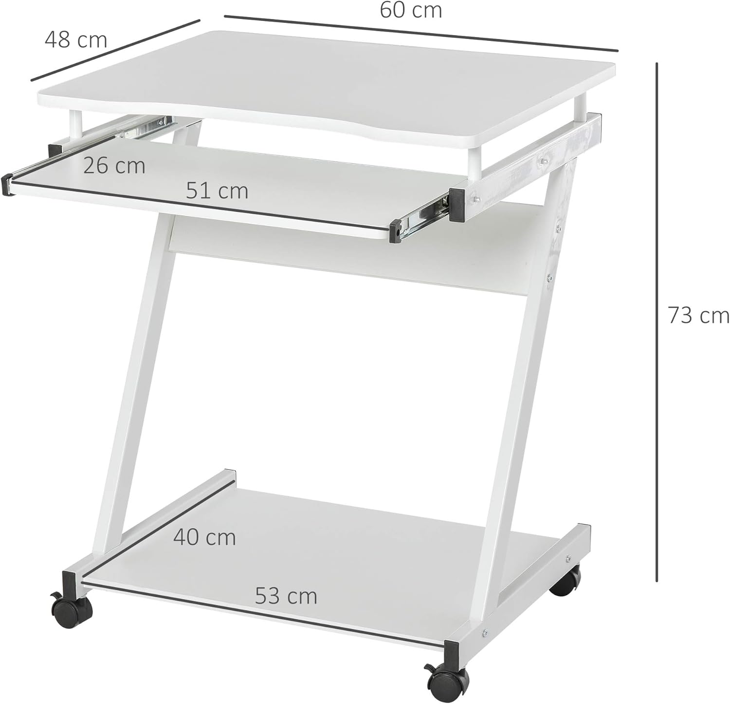 An excellent piece of design. Probably as narrow as is possible to accommodate a standard keyboard. (could be narrower if accommodating a keyboard without a numerical keypad.) Well made and robust. Simple to assemble with clear instructions and tools provided. moves readily and looks good.