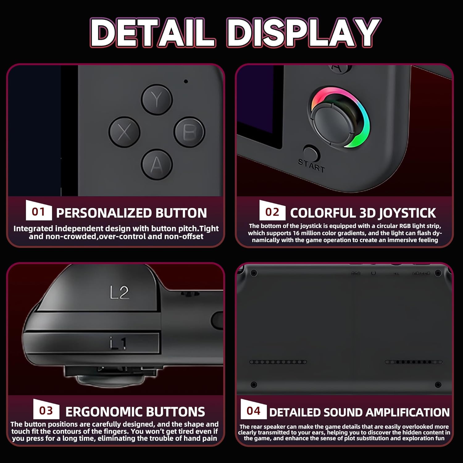 Excellent Visual Experience & Immersive Sound Effects: This emulator handheld game console is equipped with a 5.1-inch IPS display with a resolution of 800*480, clear visual effects, and a comfortable gaming experience. It uses an 8-ohm 1-watt speaker and is equipped with a 3.5mm headphone jack to bring you immersive high-quality sound effects, making the game more realistic and more enjoyable to play, enhancing your gaming experience