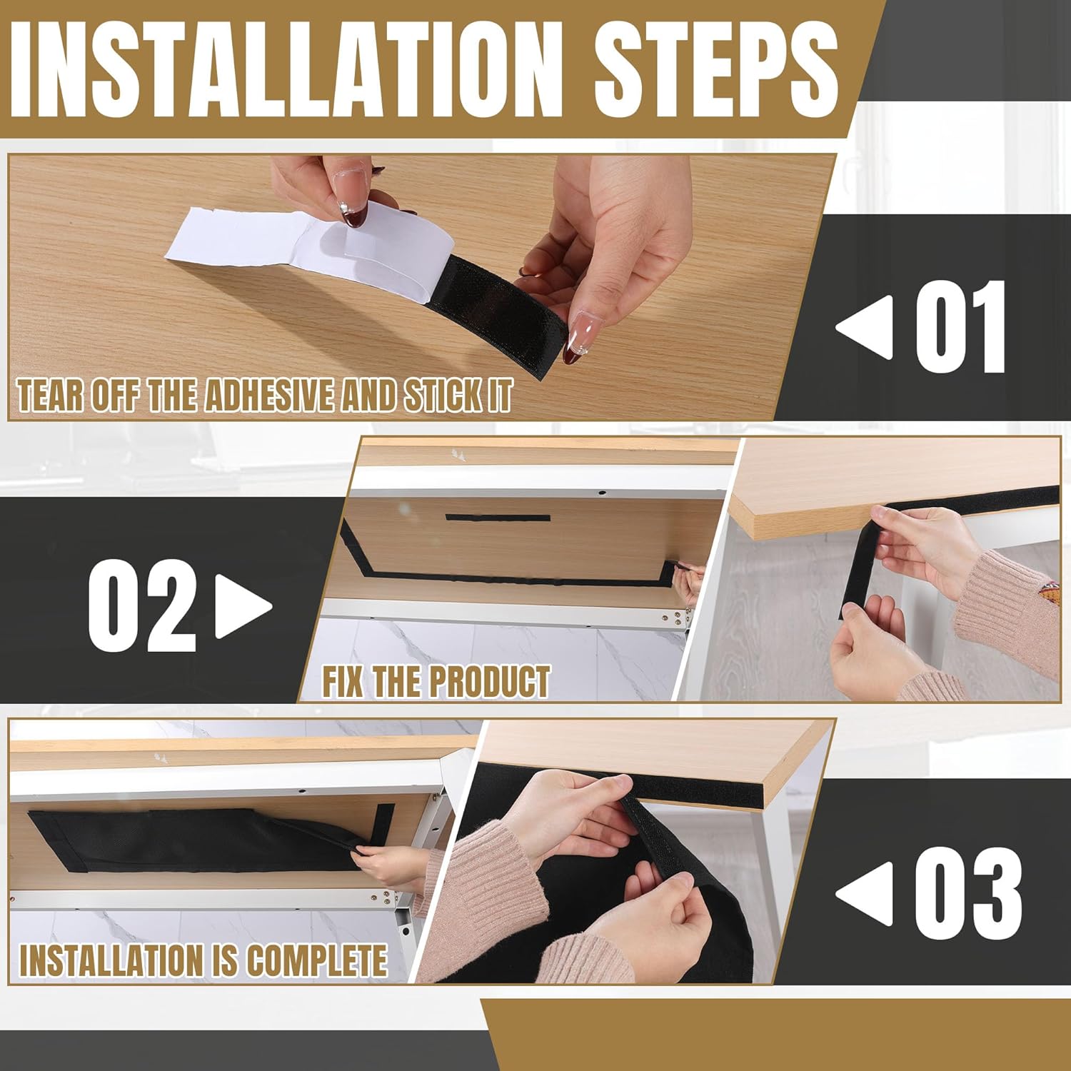 【Easy to Install】: This under-table cable management adopts a self-adhesive design. You only need to tear off the adhesive backing and stick it on the table. No complicated tools are required.