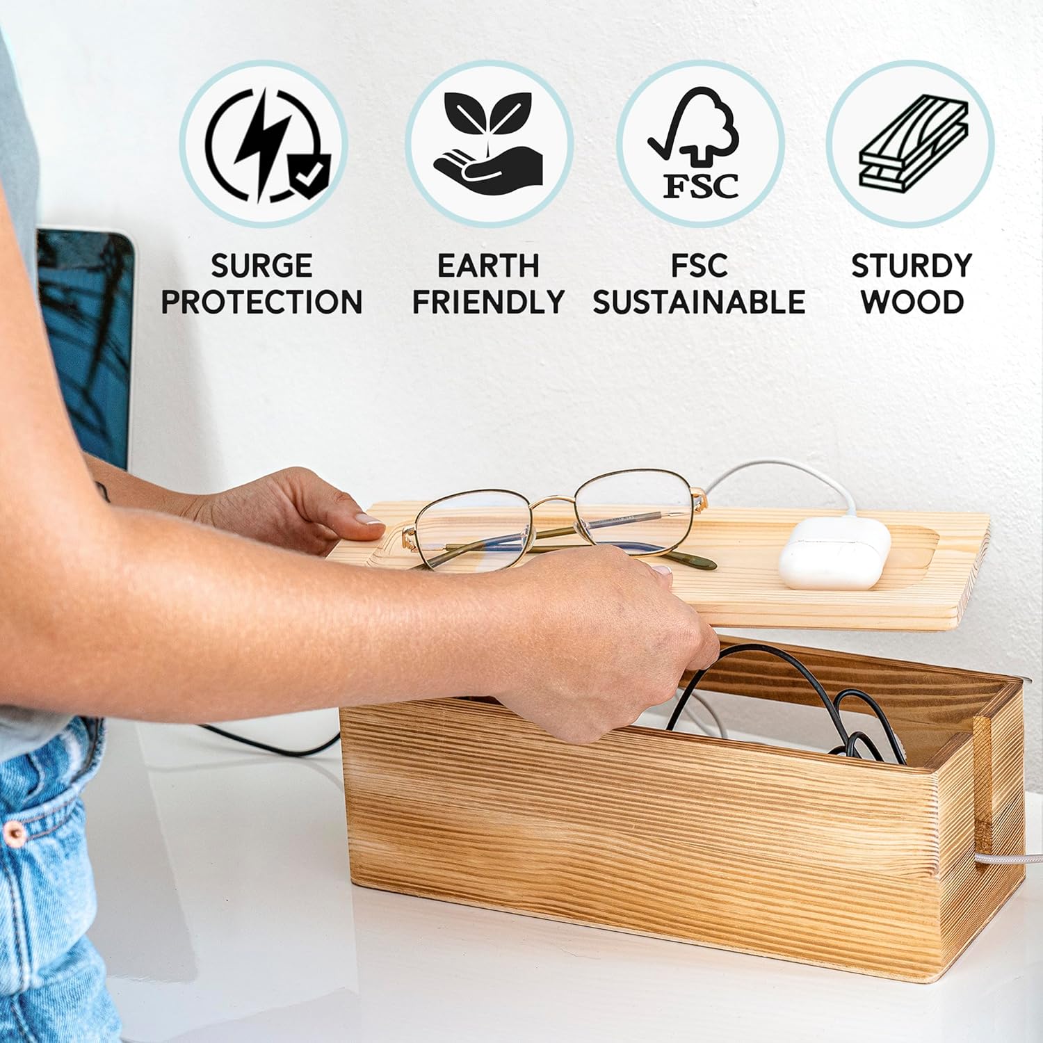 STYLISH RUSTIC INDUSTRIAL DESIGN: Our unique design has been developed to make the most modern box for wires that adds taste to your storage solutions with a nice cover, a high quality and an innovative design.