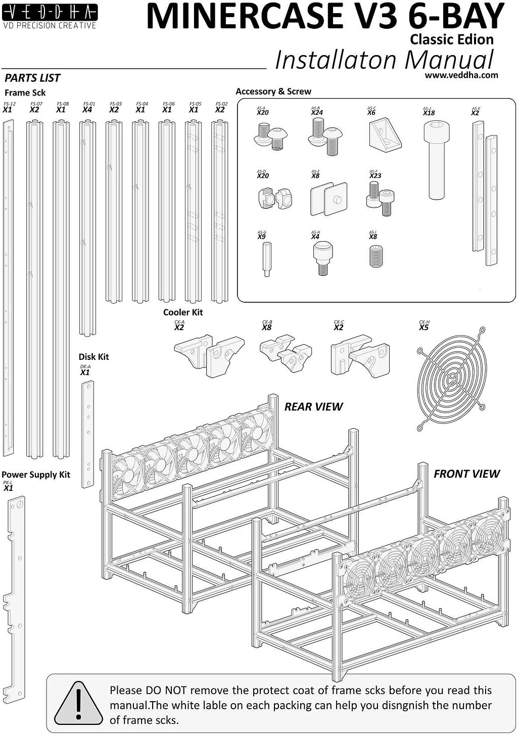 ✔ Included 1X GPU Rig Frame. 6 GPU Enhanced with 5 Fans(The fan color is sent randomly)